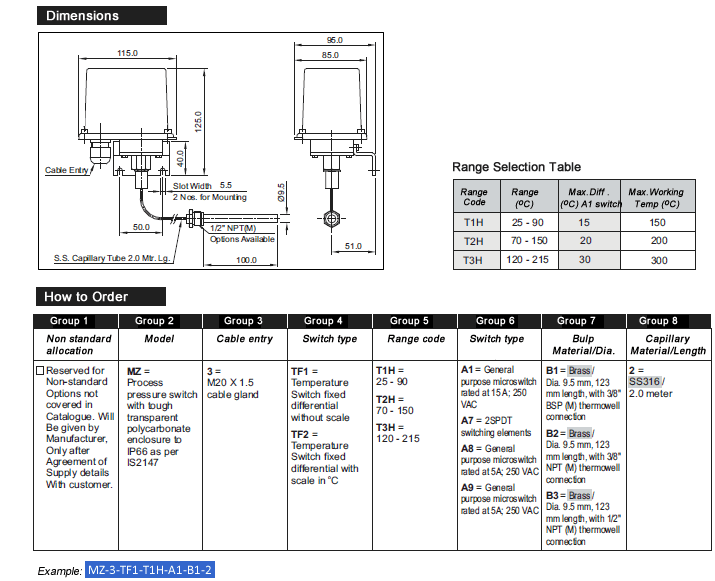 SPDT Snap action switch, Max.15 A / 250 VAC |